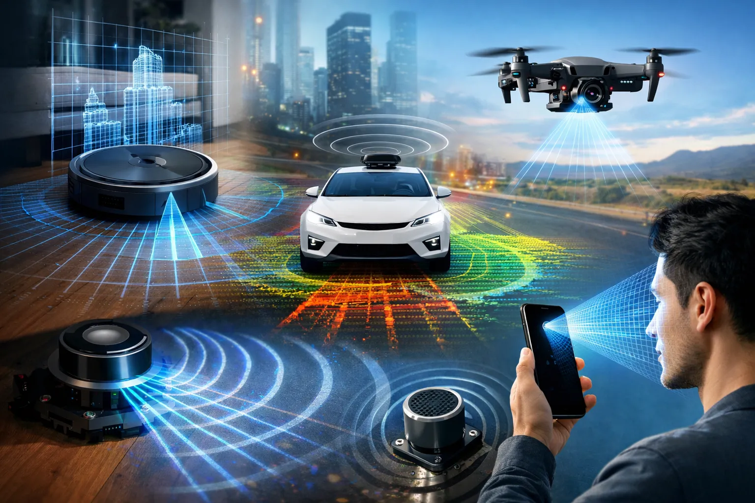 ロボット掃除機、自動運転車、ドローン、スマートフォンの顔認証――これらの先進的な機器に共通して使われている重要な技術が「距離センサー」です。距離センサーは、対象物までの距離を測定するための装置であり、機械が周囲の環境を理解するための基礎となる存在です。
