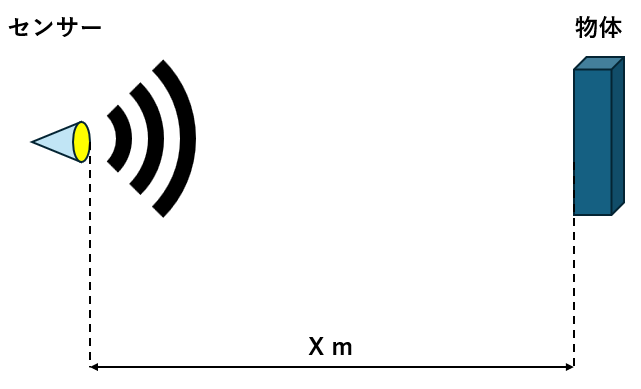 音は広がりやすいため、正確な位置というより「だいたいこの距離」に物体があることを検知する用途に向いています。