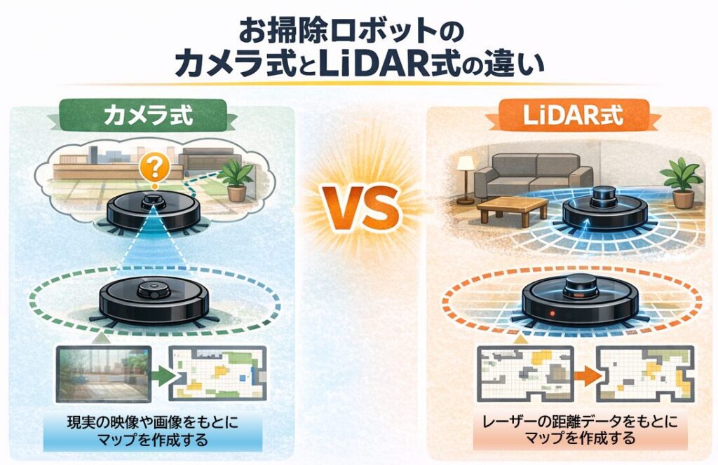 カメラ式とLiDAR式の違いとは?ロボット掃除機のマッピング方式を比較